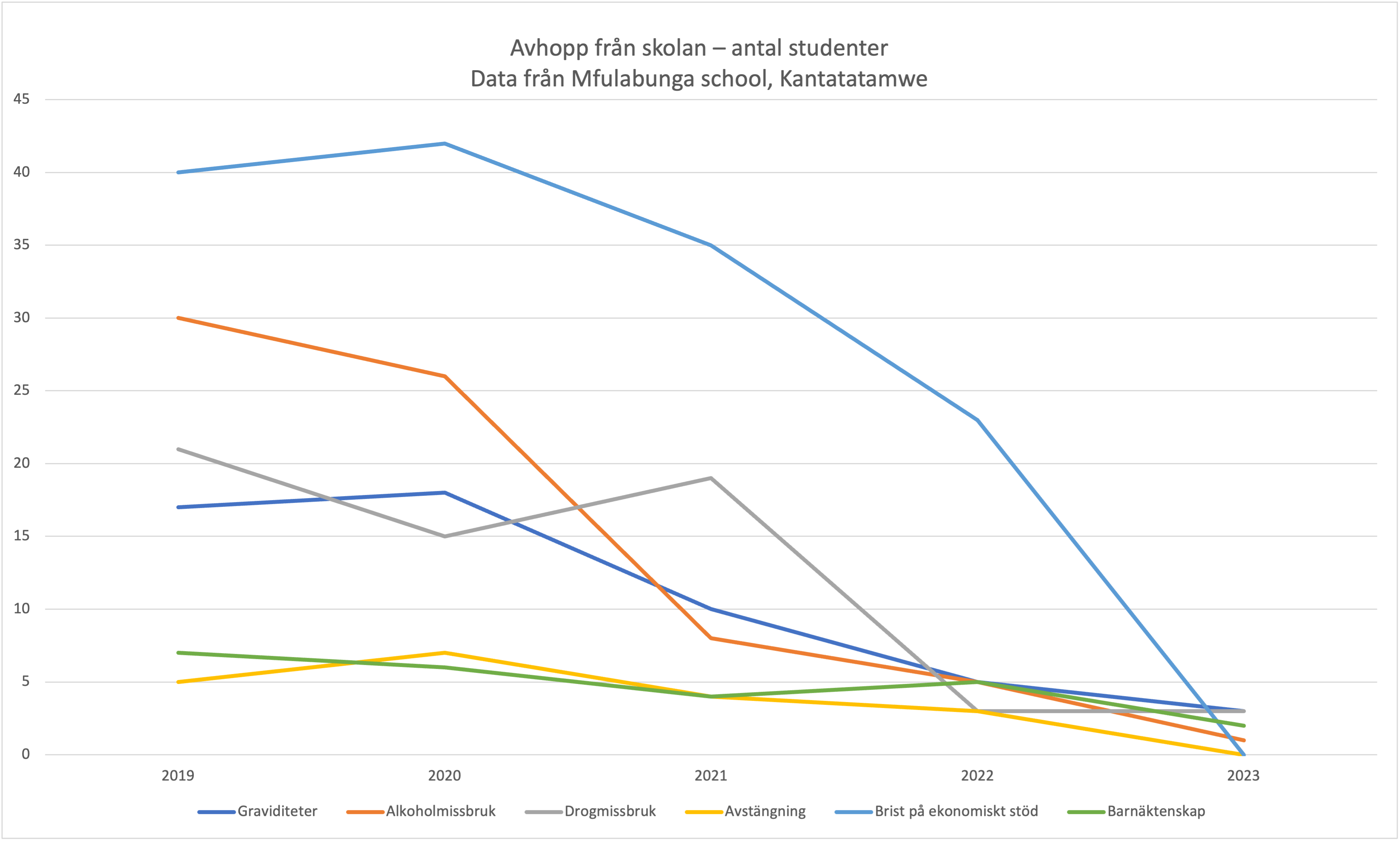 Antal elever som hoppat av skolan sedan vi påbörjade vårt arbete 2019.